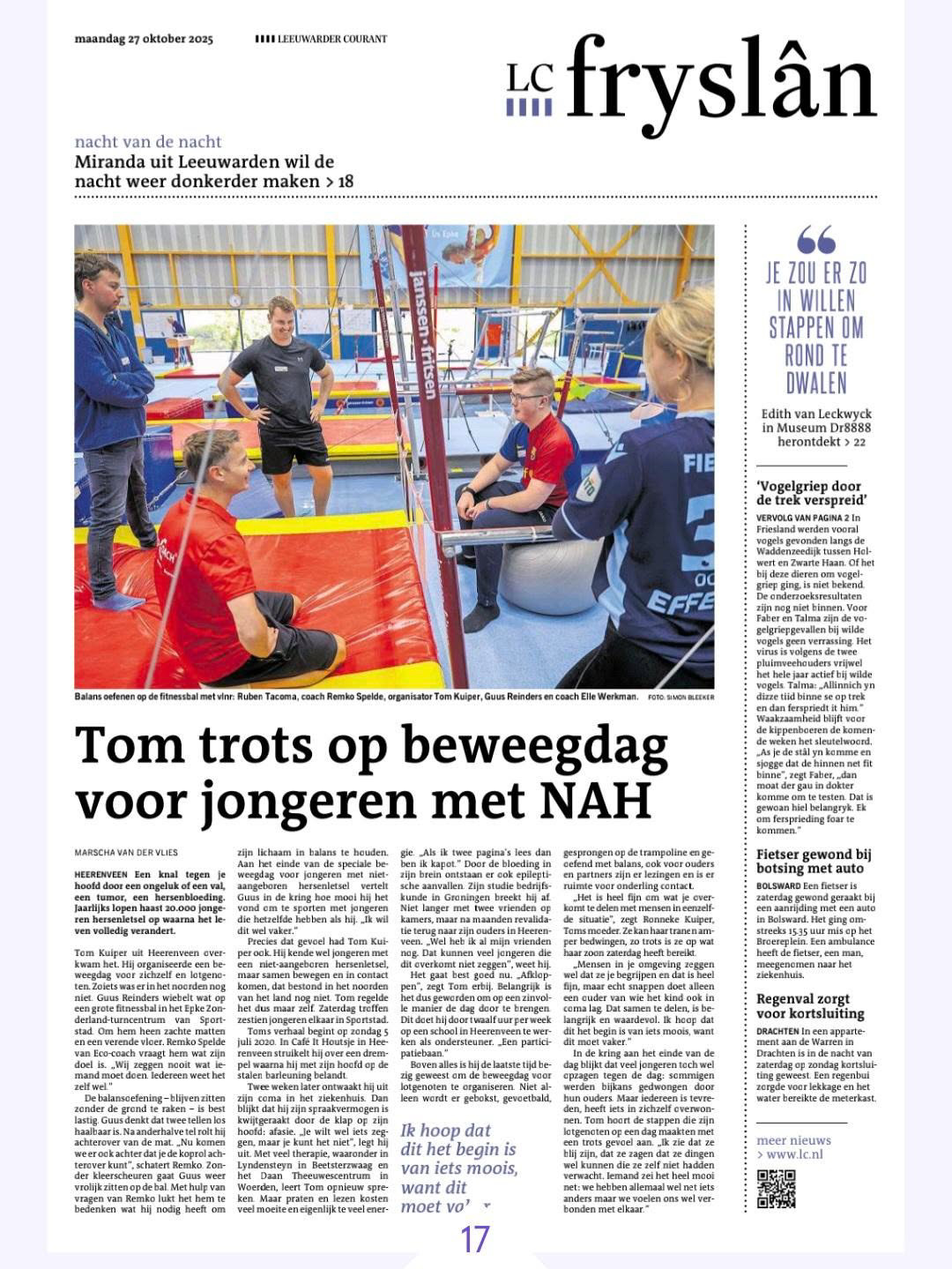 Oktober 2025 - NAH Beweegdag - artikel in het Fries dagblad